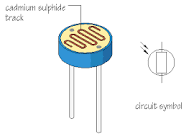 Como características principales que puedo mencionar para su uso práctico, es que las LDR usadas para este circuito tienen como valor máximo de resistencia en plena oscuridad alrededor de 10 mega ohms, cuando incide sobre ella una luz brillante como la del Sol su resistencia disminuye hasta valores inferiores a 200 ohms.